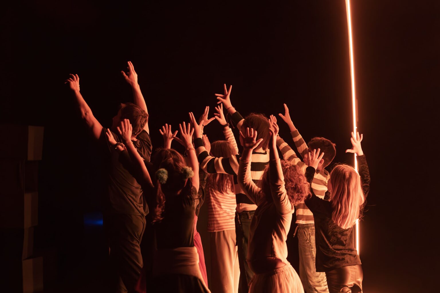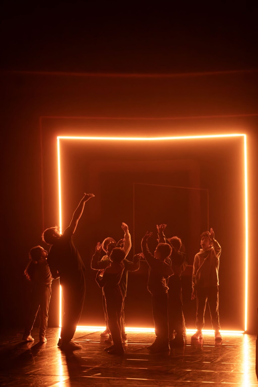 Together, they build a one-of-a-kind performance, where the simple act of mimicking movements becomes an unexpectedly powerful way of revealing each child’s individuality. At the heart of a scenography where set, light and soundscape converse with one another, the children become the heroes of a magical microcosm.
