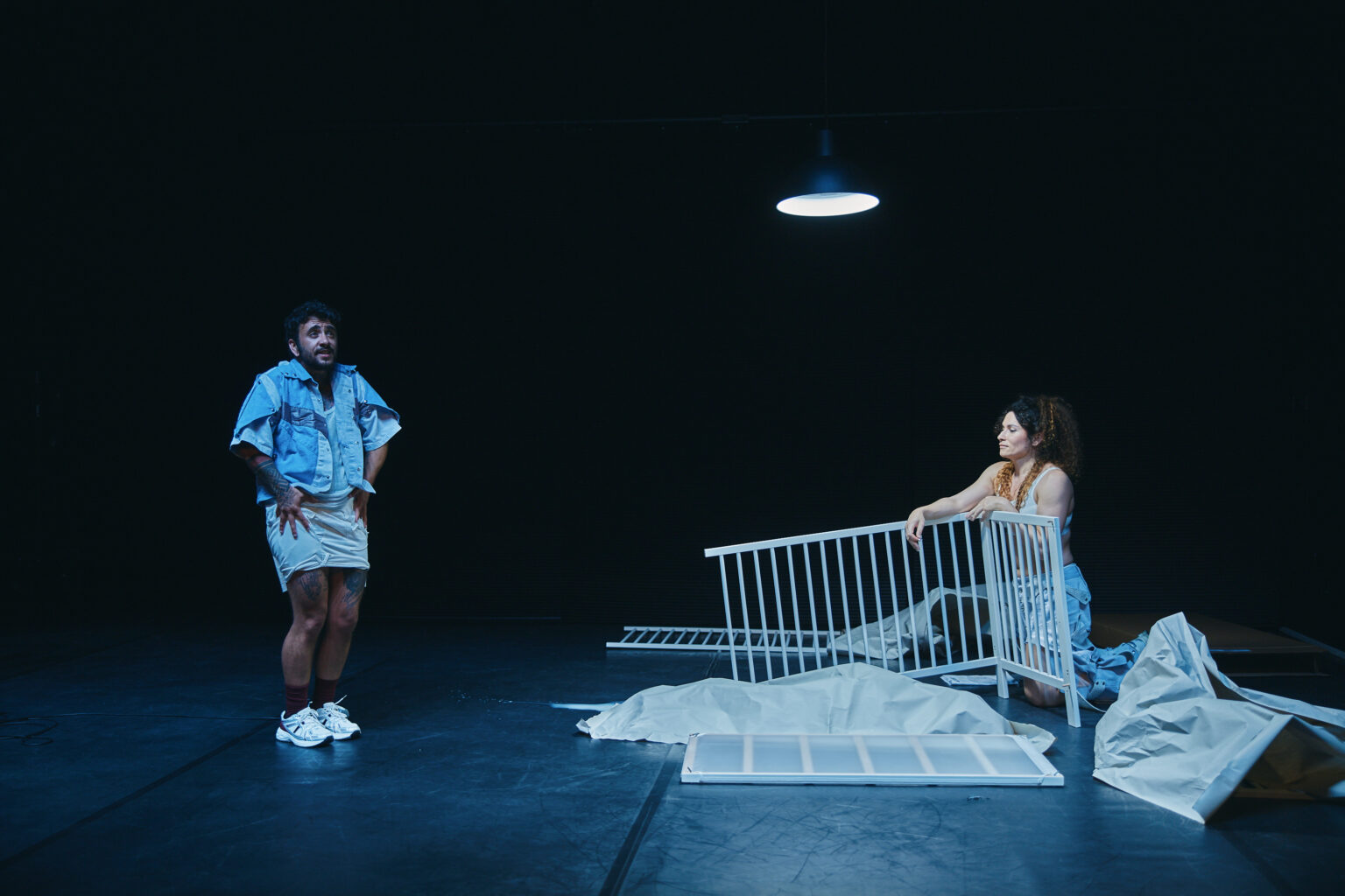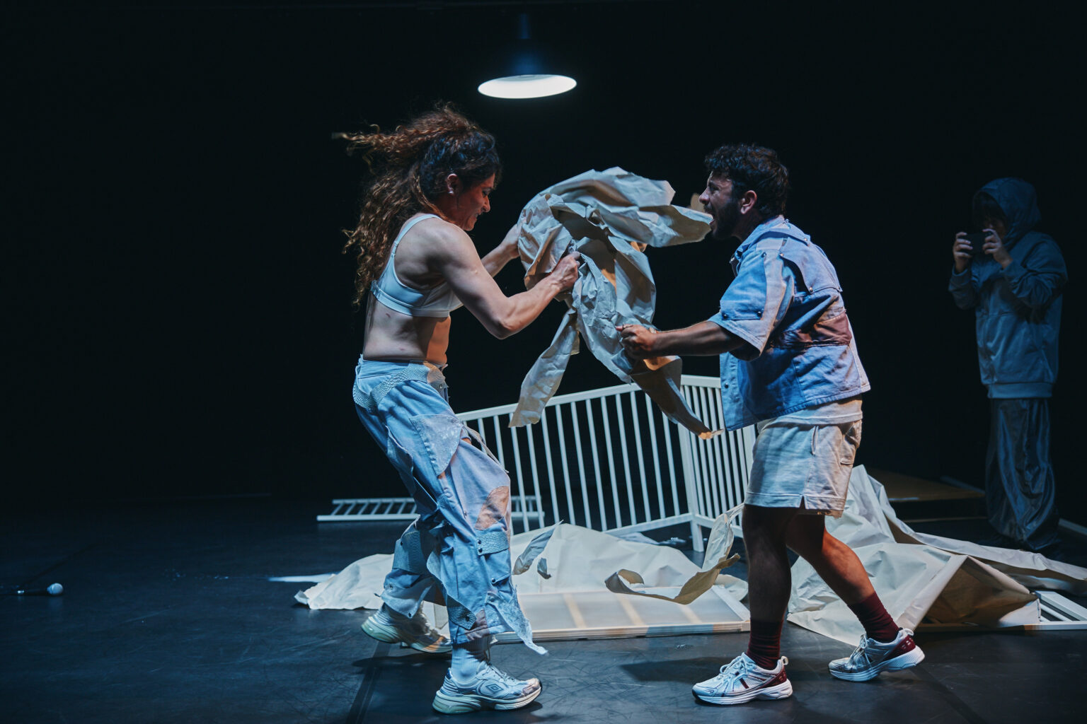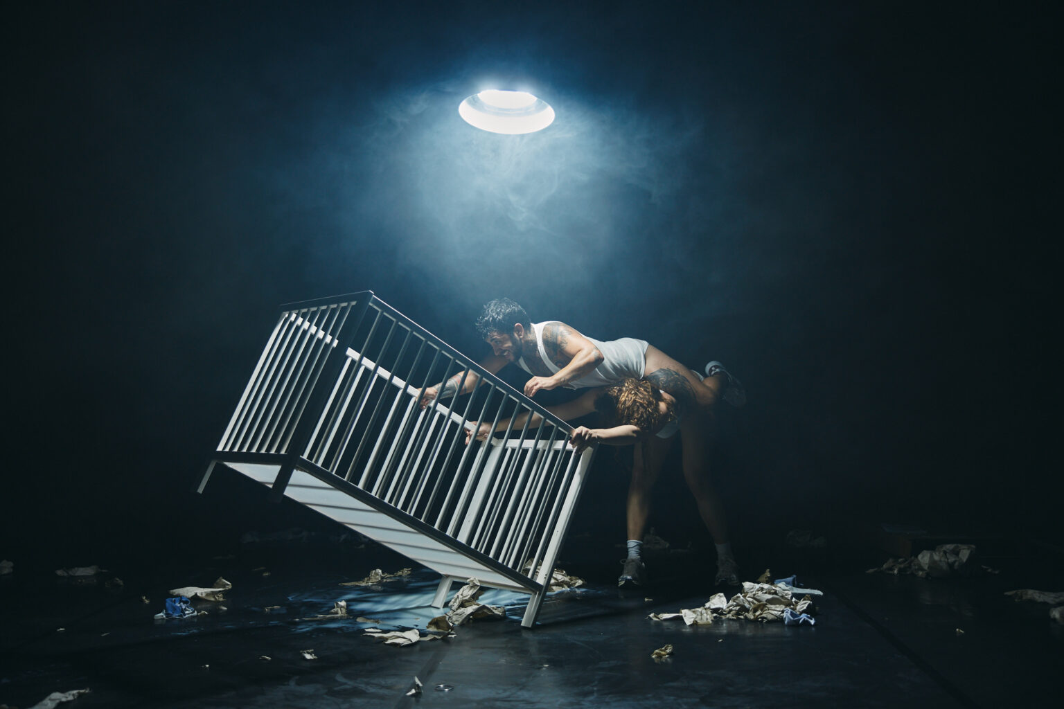In a post-apocalyptic world mirroring our own, a trans couple imagines what it might mean to become parents. Two people dreaming of becoming three. Yet the anticipation of joy is quickly shadowed by doubt. How do you care for a baby without losing yourself? Raising a child and welcoming their vulnerability in an anxiety-ridden environment sparks a swirl of conflicting emotions, yearning and resistance intertwined. Gaya de Medeiros and Ary Zara embody a visceral, intimate duo, embracing a bold form of theatricality infused with poetic nuance. A short film, shot in real time during the performance, brings the piece to a close.