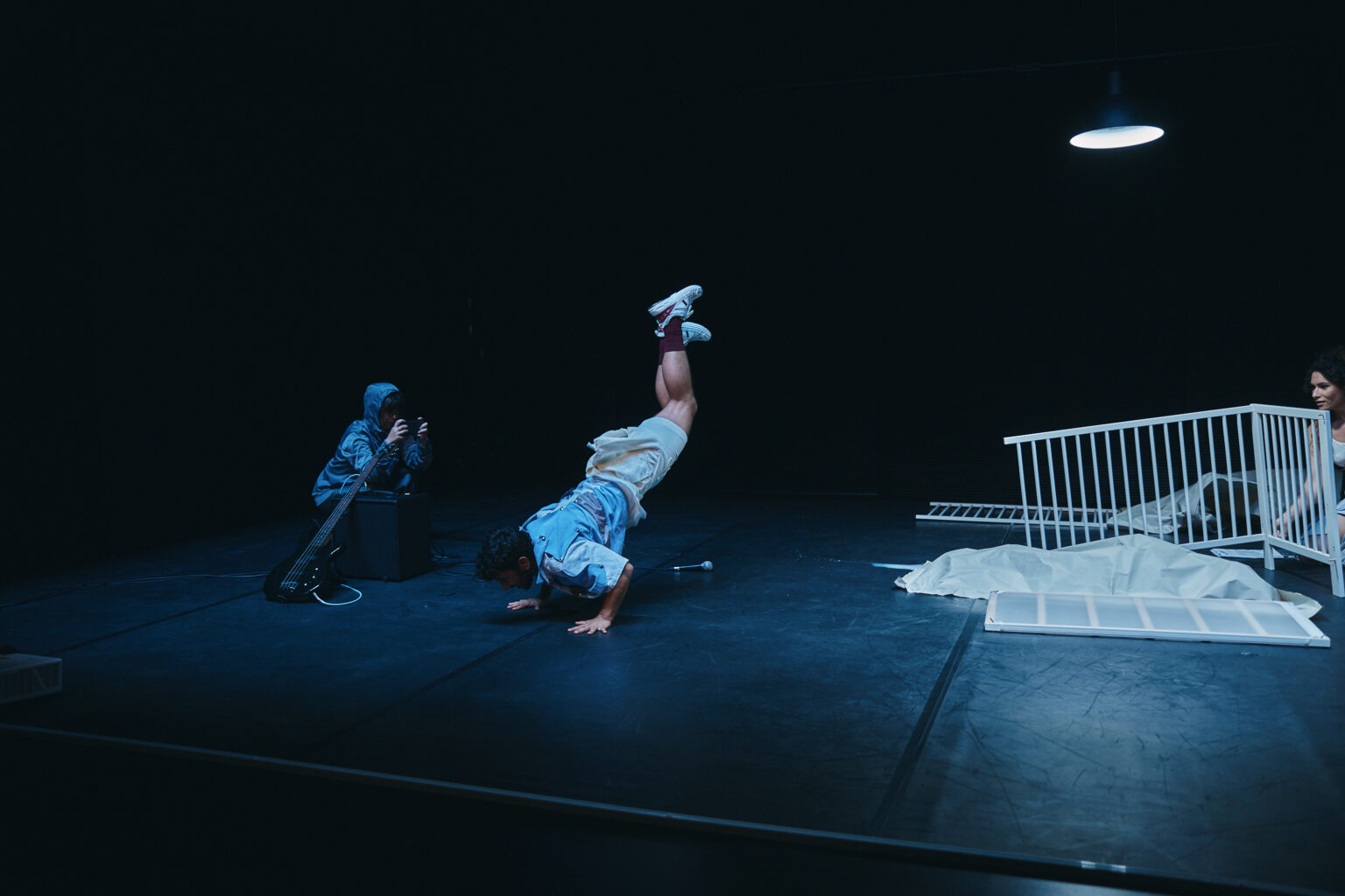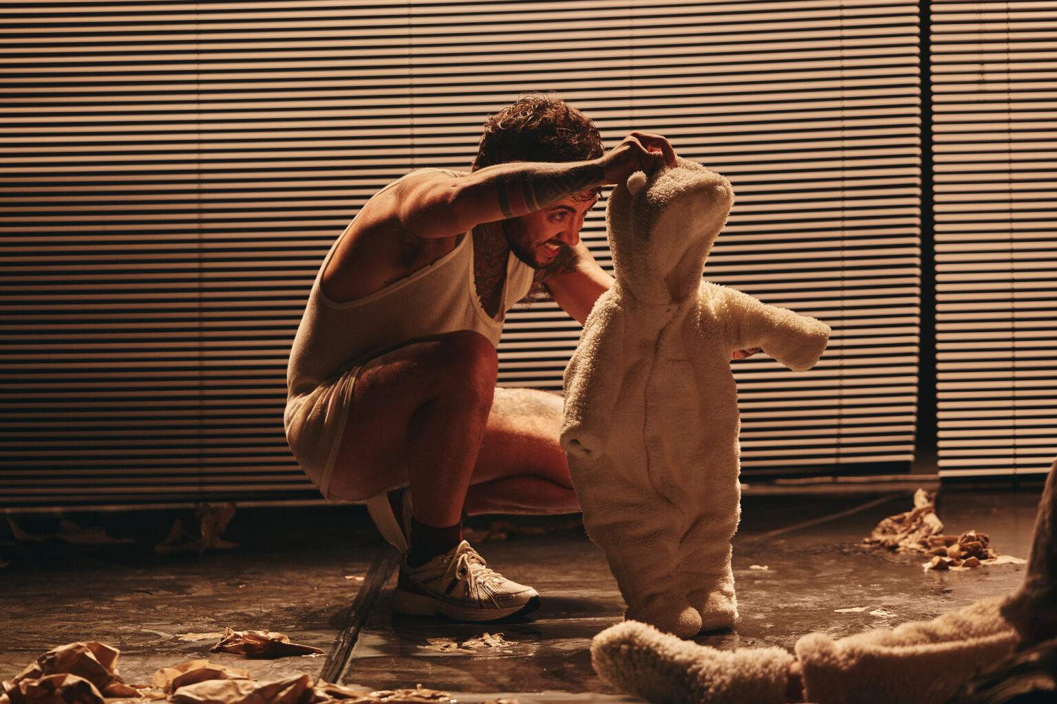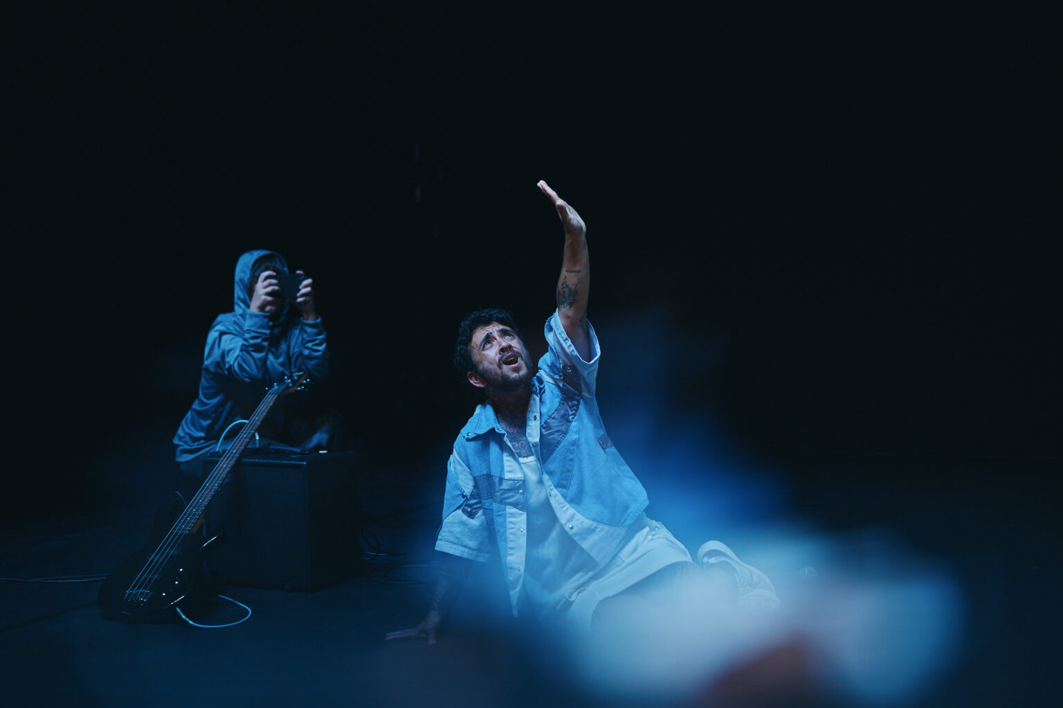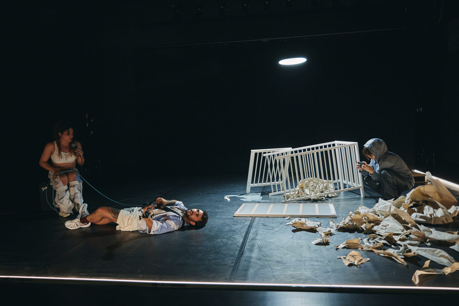 In a post-apocalyptic world mirroring our own, a trans couple imagines what it might mean to become parents. Two people dreaming of becoming three. Yet the anticipation of joy is quickly shadowed by doubt. How do you care for a baby without losing yourself? Raising a child and welcoming their vulnerability in an anxiety-ridden environment sparks a swirl of conflicting emotions, yearning and resistance intertwined. Gaya de Medeiros and Ary Zara embody a visceral, intimate duo, embracing a bold form of theatricality infused with poetic nuance. A short film, shot in real time during the performance, brings the piece to a close.