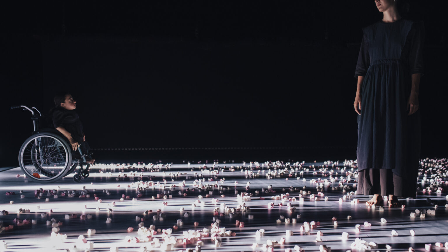 Une plasticité énigmatique se dégage de la scène, infusant l’esprit d’un agréable sentiment d’irréalité. Avec une infinie délicatesse, le duo formé par Chiara Bersani et Elena Sgarbossa invite à glisser dans ce qui s’apparente à une forêt imaginaire. D’autres créatures les y rejoindront bientôt. Cette petite communauté danse un conte contemporain en ciselant une relation privilégiée avec le spectateur. Dans la forêt des enfants perdus, les corps atypiques sont valorisés dans toute leur puissance poétique.
