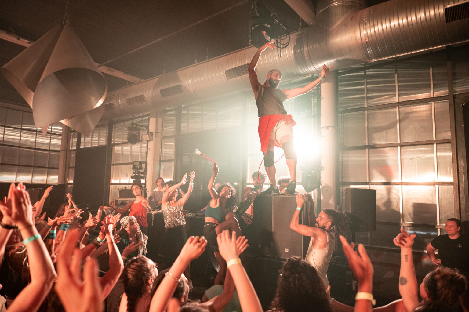 Orchestrée par Eric Minh Cuong Castaing, cette célébration performée par huit danseurs originaires d’Égypte, de Palestine, du Liban et le musicien libanais d’origine palestinienne Rayess Bek fait du « danser ensemble » un manifeste politique pacifiste.